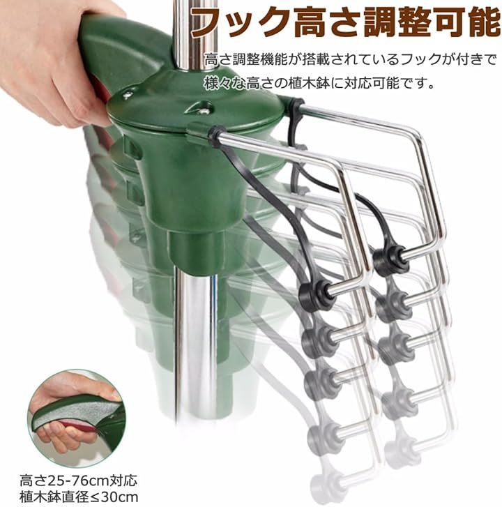 「フック高さ調整可能」高さ調整機能が搭載されているフックが付きで、様々な高さの植木鉢に対応可能です。