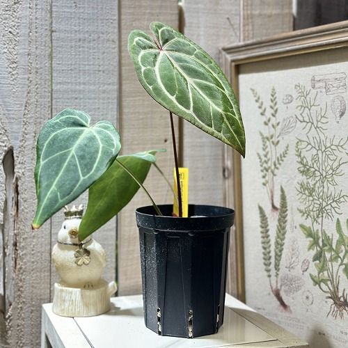 アンスリウム レッドクリスタリナム インドネシアは、赤く色づく葉脈とベルベットのような厚みのある葉が特徴の希少な観葉植物です。
