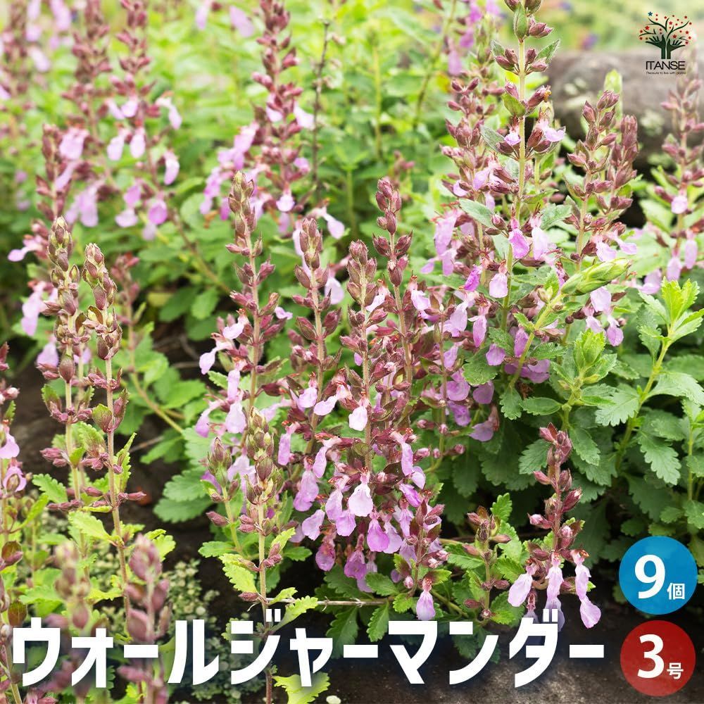 ITANSE ウォールジャーマンダー 3号 9個セット【初心者向け・育てやすい/品種で選べるハーブ苗】学名:Teucrium chamaedrys/シソ科テウクリニウム属(ニガクサ属) 耐寒性多年草/別名:ニガクサ、グランドオーク、Wall germander●夏にピンクがかった紫色の小花を咲かせる。葉は濃緑色で光沢があり、縁にギザギザがある。葉には強い香りがあり、乾燥させてポプリやリースにも。