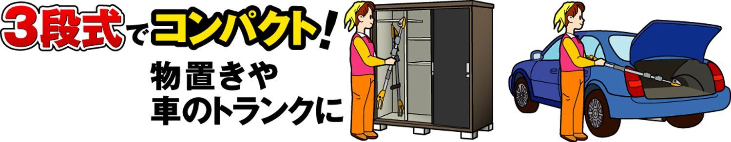 コンパクトで物置や車のトランクにも収納できる、3段式! 1.4m~3.0m伸縮自在