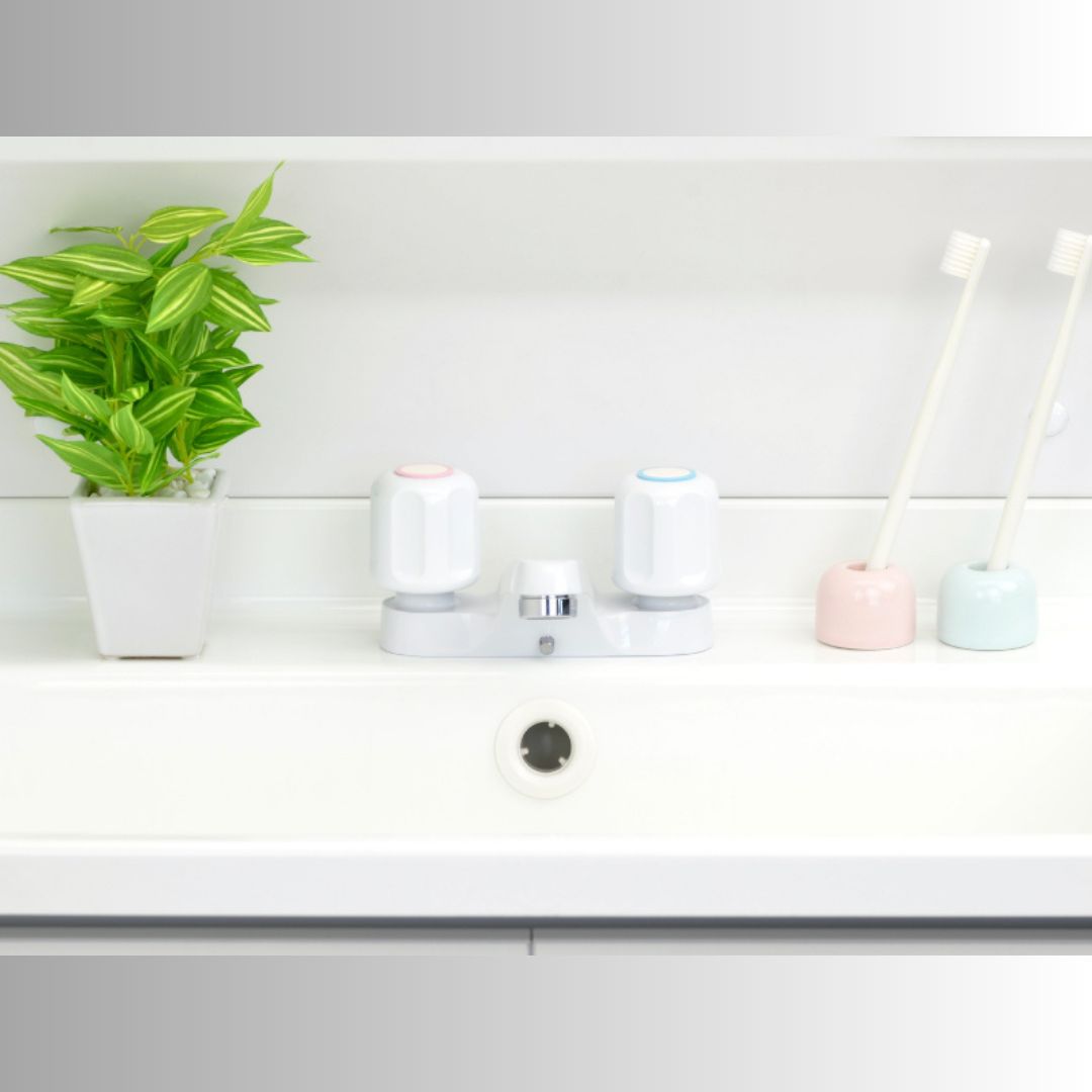 ・ボディとハンドルをホワイトで統一した洗面用2ハンドル混合栓です。