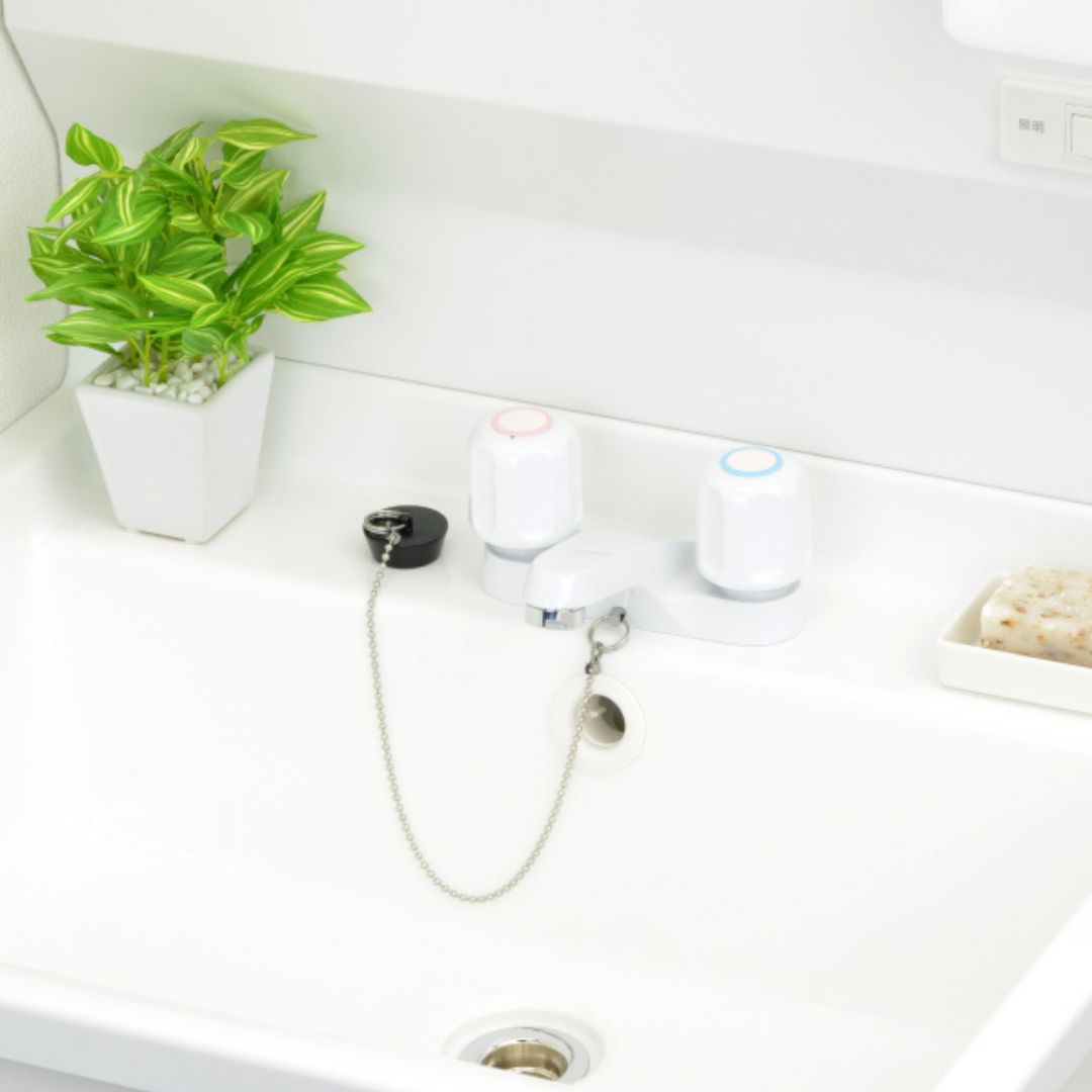 ・ボディとハンドルをホワイトで統一した洗面用2ハンドル混合栓です。