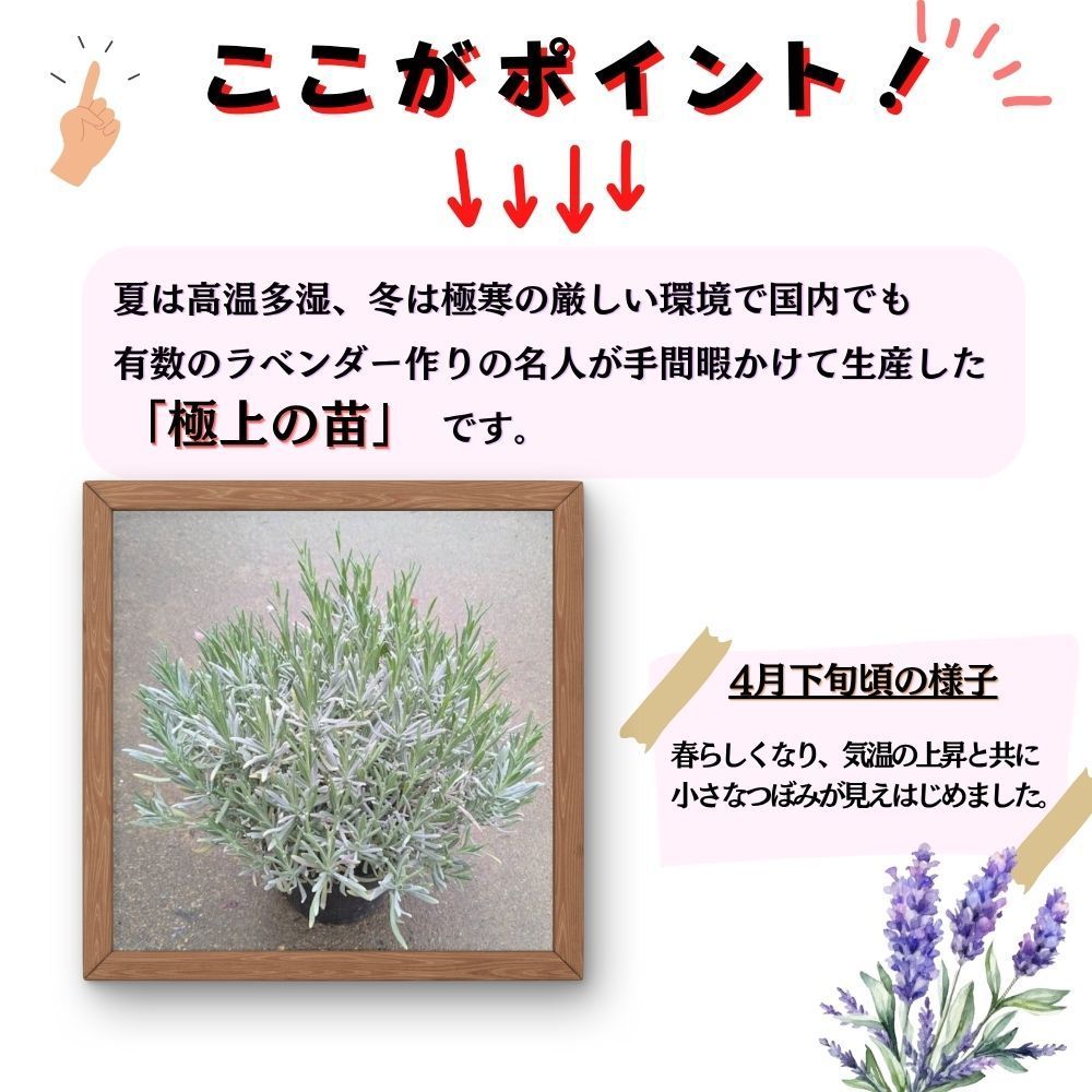 このグロッソは「耐寒・耐暑・耐病性」を兼ね備え数あるラベンダーの中でも特におすすめの品種です。