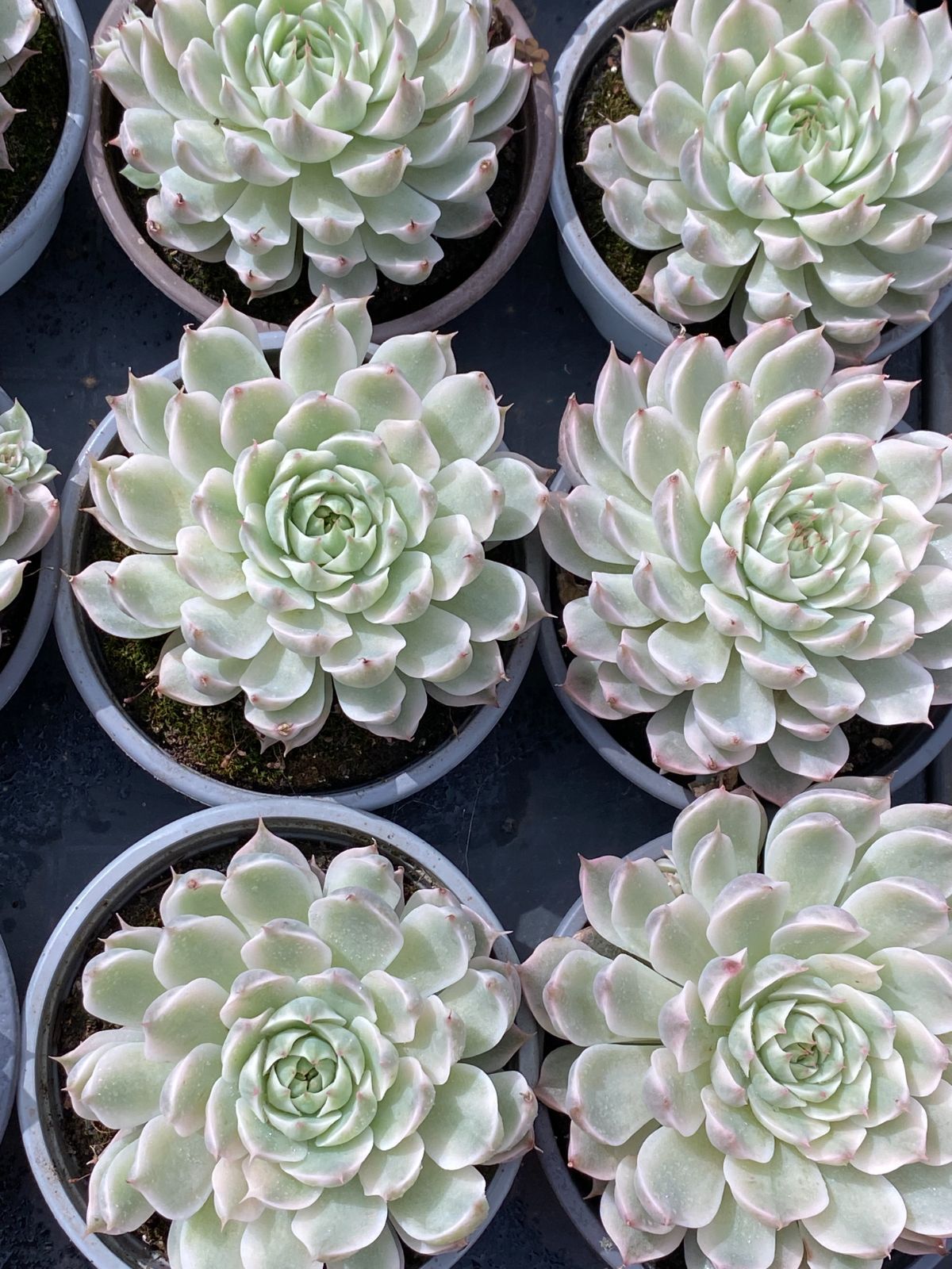 柔らかな光を浴びて輝く、エケベリア特有のロゼットが美しい多肉植物です。
